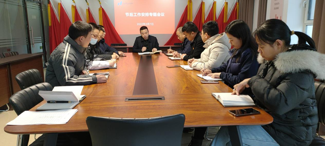 人勤春來早,奮進正當(dāng)時。2月7日上午,菏投潤和公司組織召開了“收心會”,號召大家迅速淡化節(jié)日氣氛,立即進入工作狀態(tài),為公司各項工作任務(wù)開展起好步、開好頭。會議由總經(jīng)理、黨支部書記邵峰主持,會上還對安全生產(chǎn)“開工第一課”和近期重點工作進行了安排布置,公司中層副職以上及子公司負(fù)責(zé)人參加了會議。