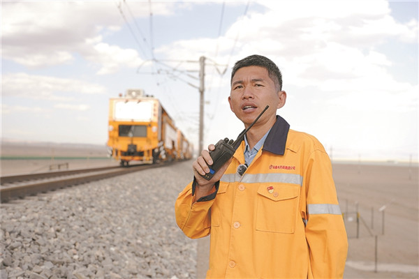 近日,喬濟源從若羌站登上了開往依吞布拉克站的貨運列車。他專注地查看前方線路、接觸網和沿線電務設備,觀察軌道的細微變化?!拔覀冘囬g融合工務、電務、供電3個專業,每月都要進行巡檢。”他說。