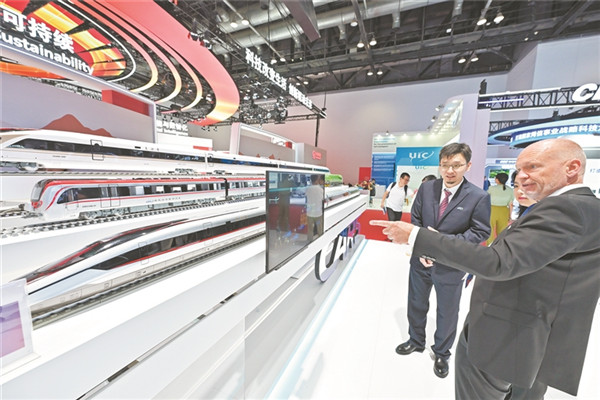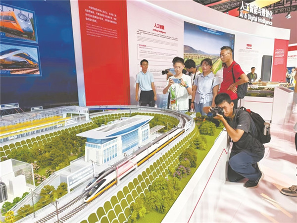 展臺(tái)上的CR450復(fù)興號(hào)動(dòng)車組模型十分亮眼。王 瑋 攝