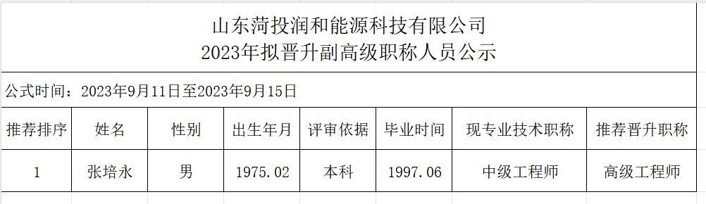山東菏投潤(rùn)和能源科技有限公司2023年擬晉升副高級(jí)職稱人員公示